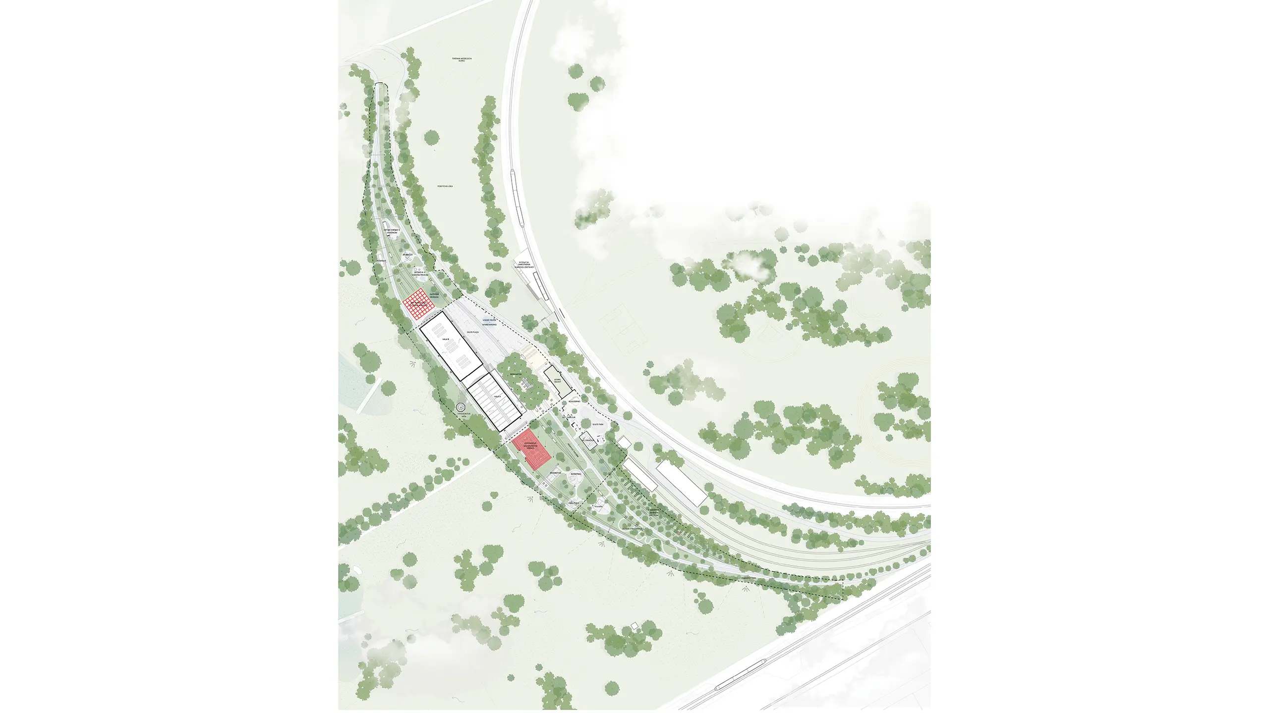 Previous Next 1/14 Maximize Depo Park Year: 11/2023 Location: Trnava, SK Authors: Oliver Hacaj, Lenka Kavuljáková, Denis Zeman, Katarína Tomanová Porubčinová, Marek Malček Collaboration: Ateliér Toman miesto vo verejnej anonymnej krajinársko-architektonickej súťaži.