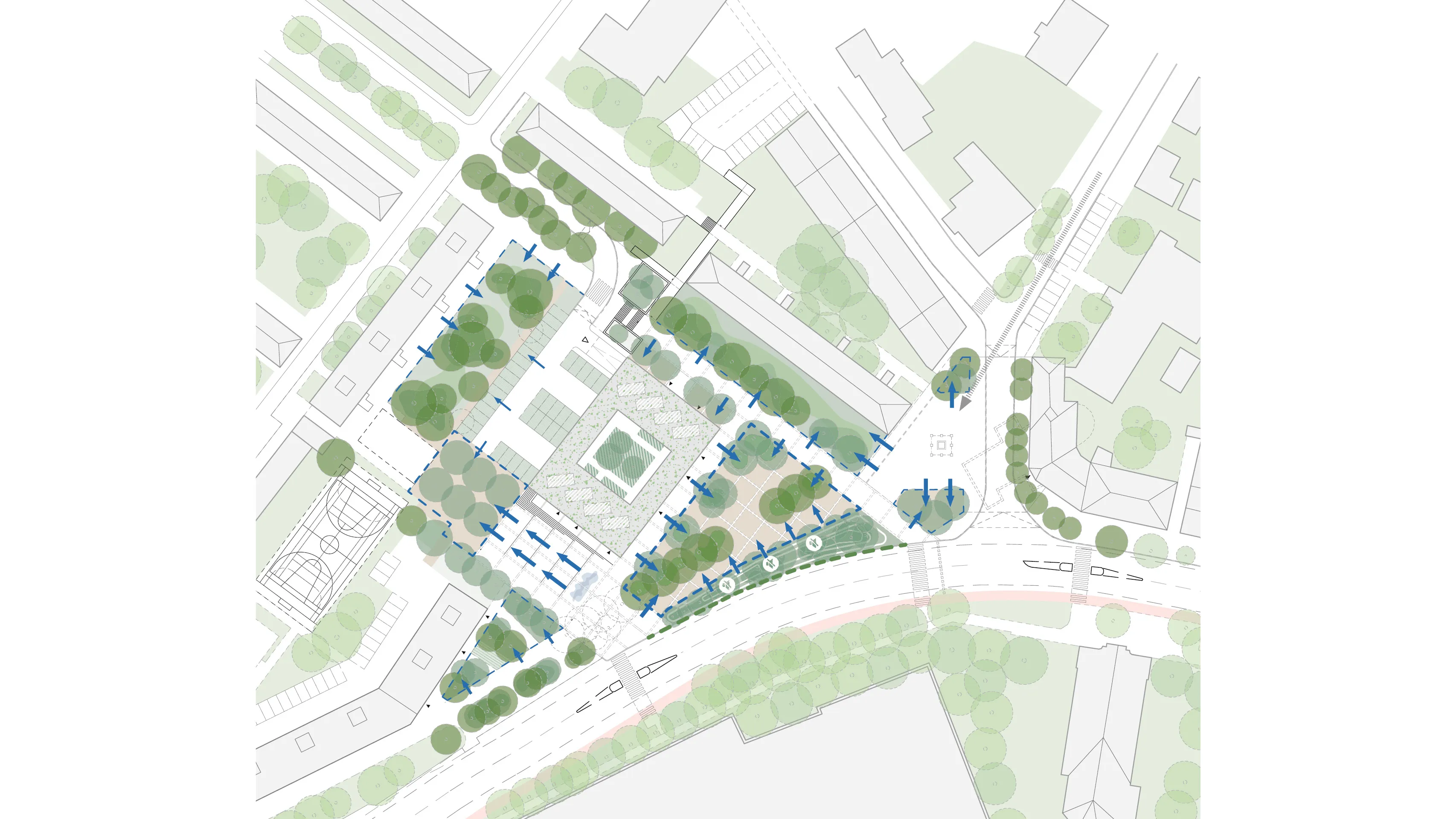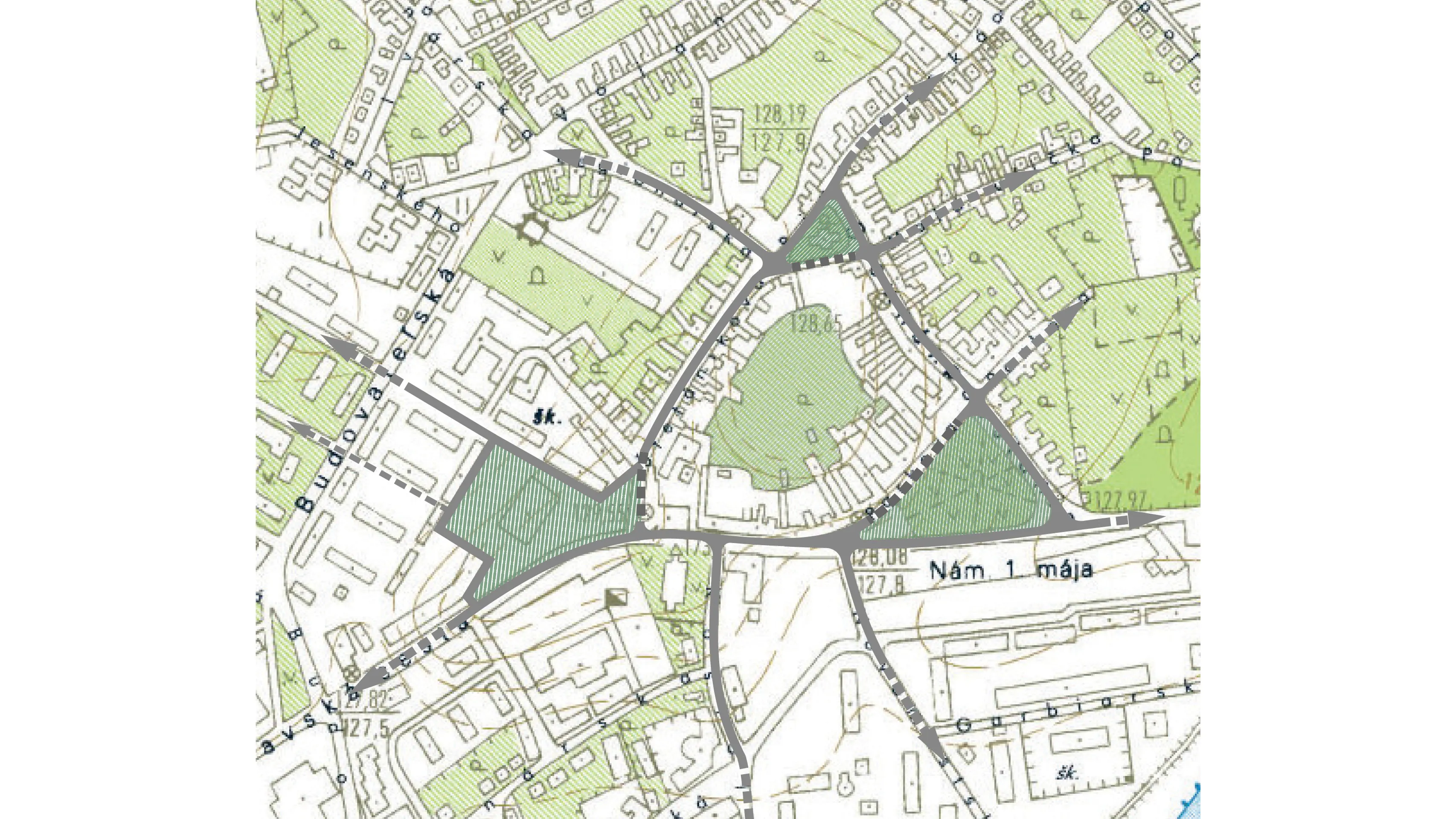 Návrh stavia na bezpečnosti, čitateľnosti a plynulosti pohybu, pričom rešpektuje existujúce urbánne väzby a prirodzene ich rozvíja.