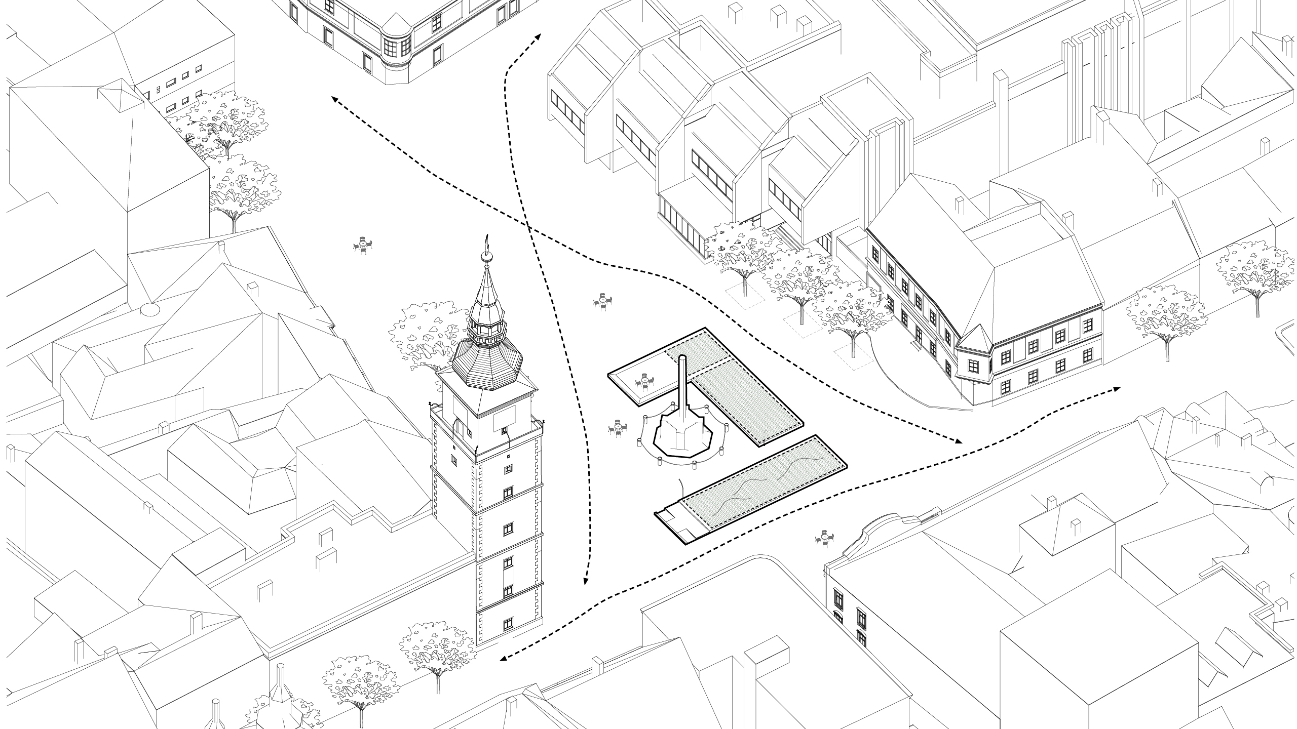 Okolo sochy Svätej Trojice sú navrhnuté tri tematické bloky.