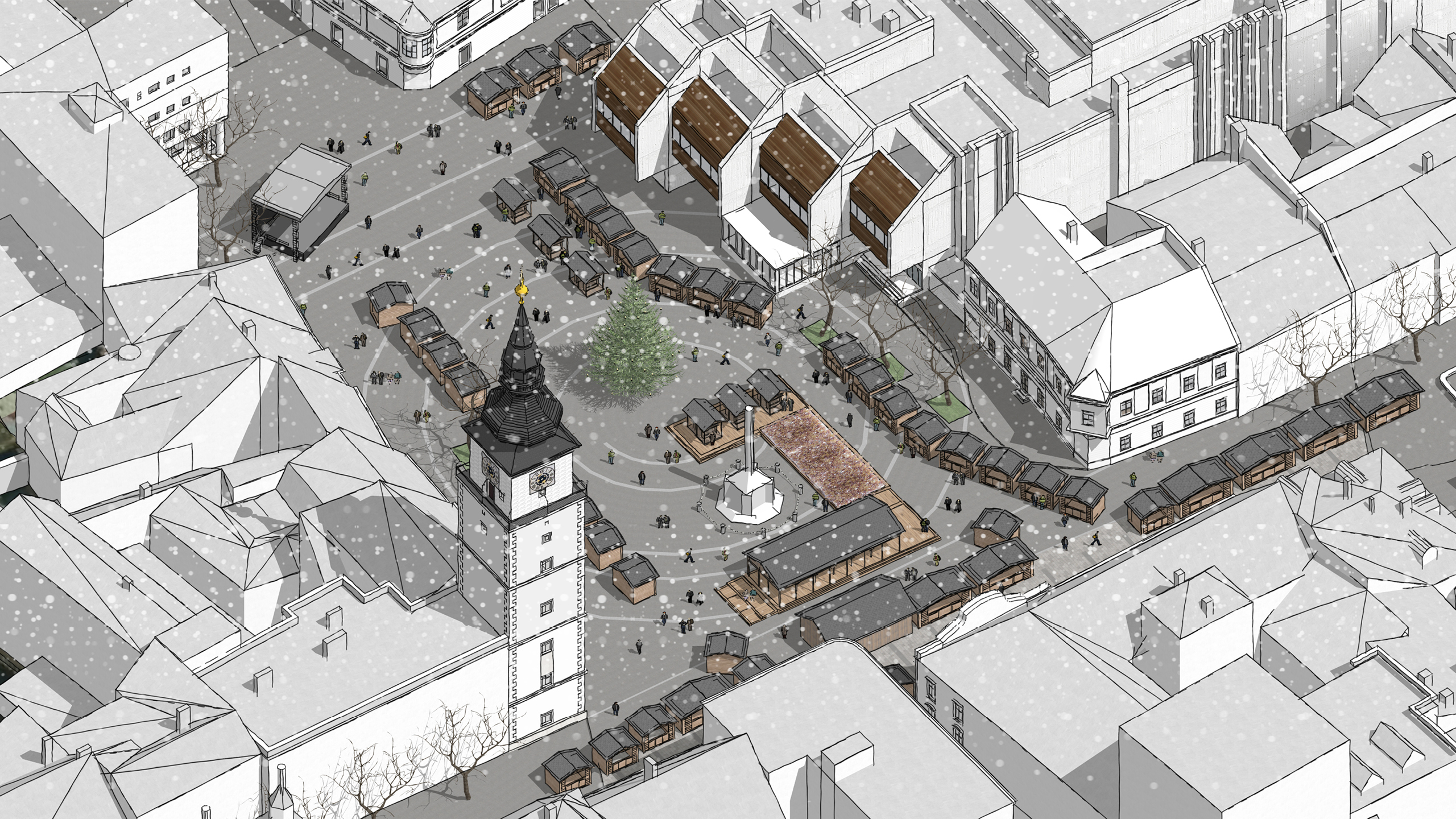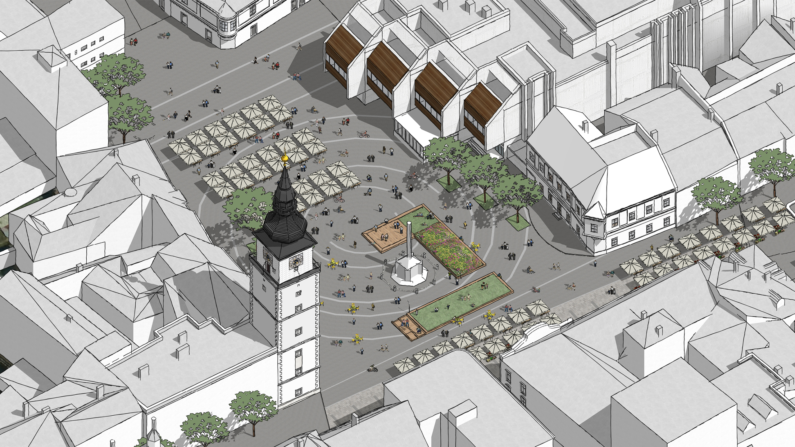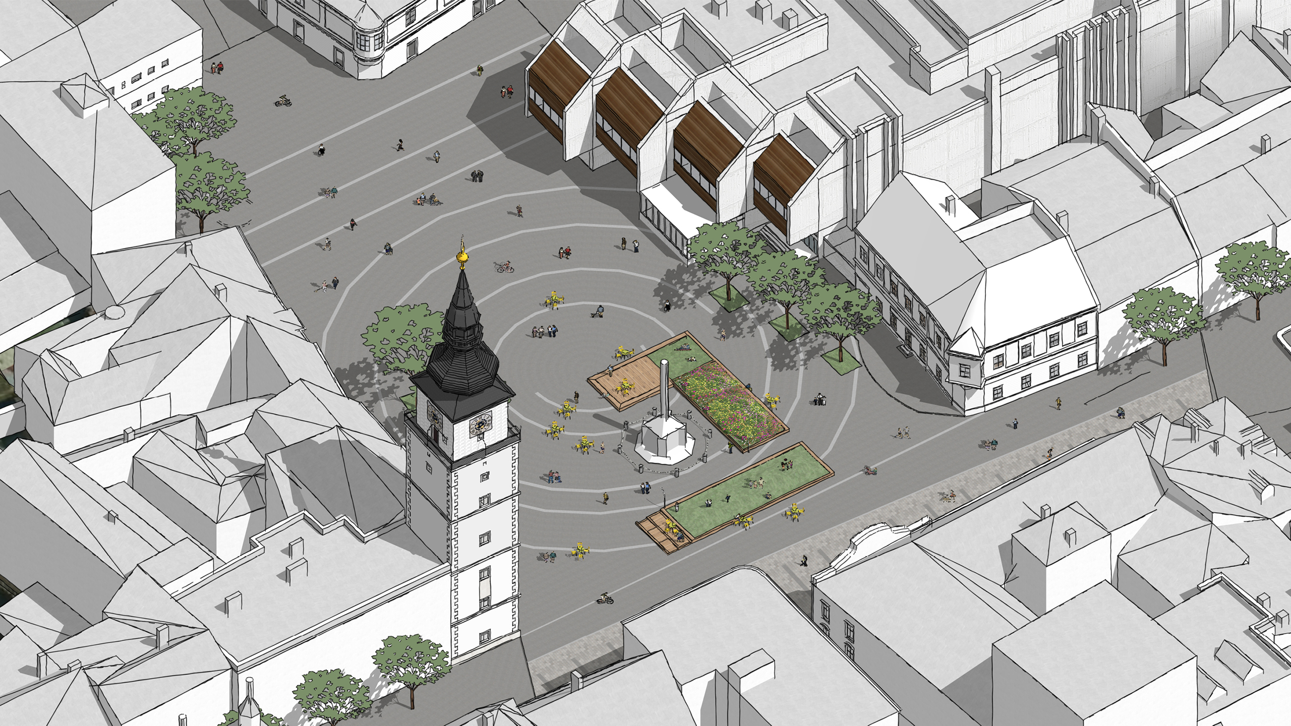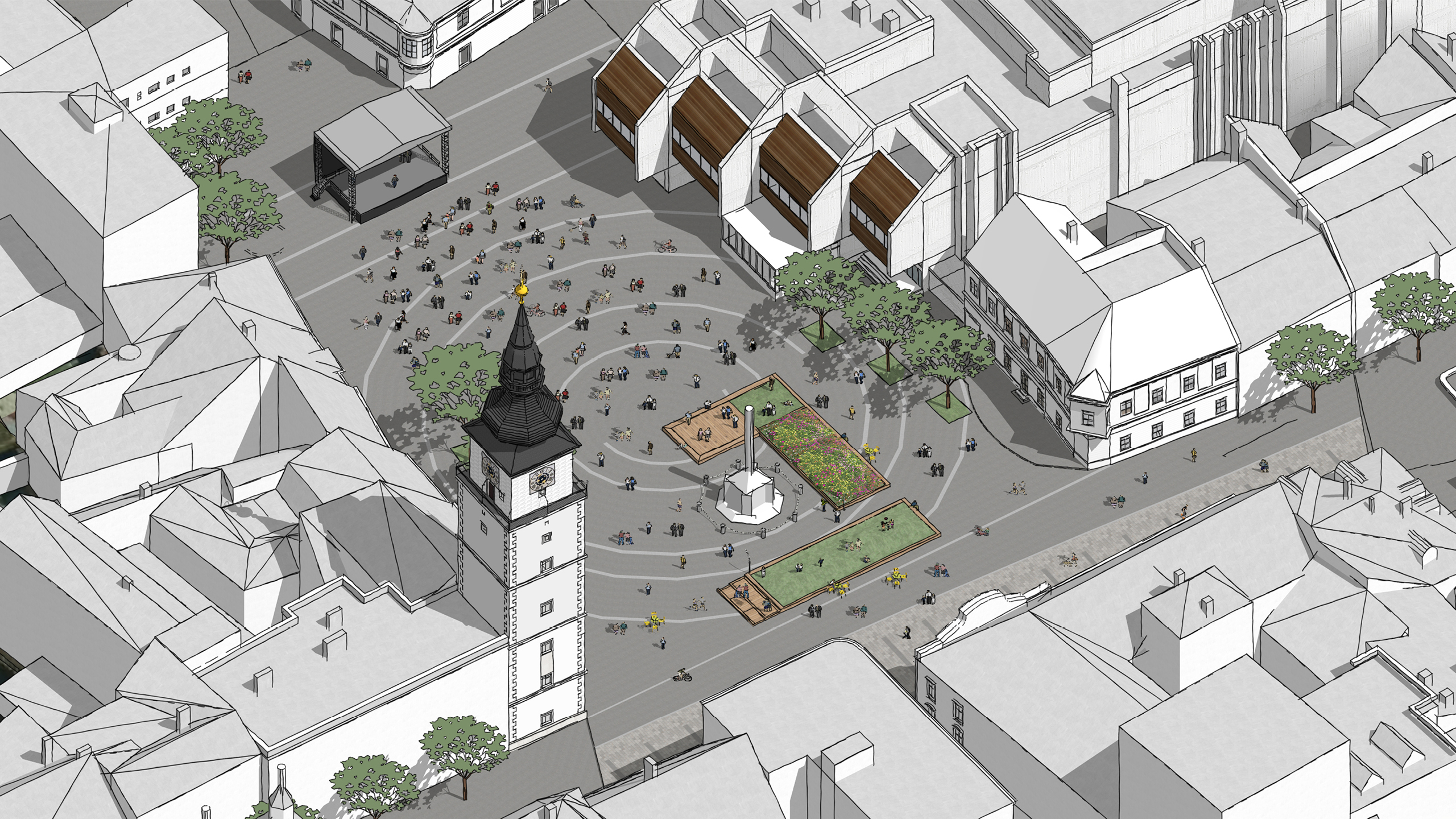 V návrhu maximalizujeme pobytové a sedacie plochy. Dotvárame námestie na živé, zážitkové miesto, kde budú obyvatelia a návštevníci radi tráviť dlhší čas.